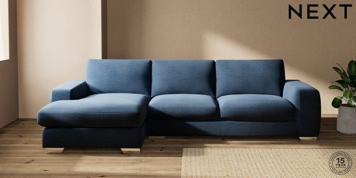 7.0.3 Buy Houghton Deep Sit Large Sofa Chaise - Left Hand Ripple Chenille Dark Blue Large Square Angle - Chrome Metal from the Next UK online shop Click here to use our accessible website