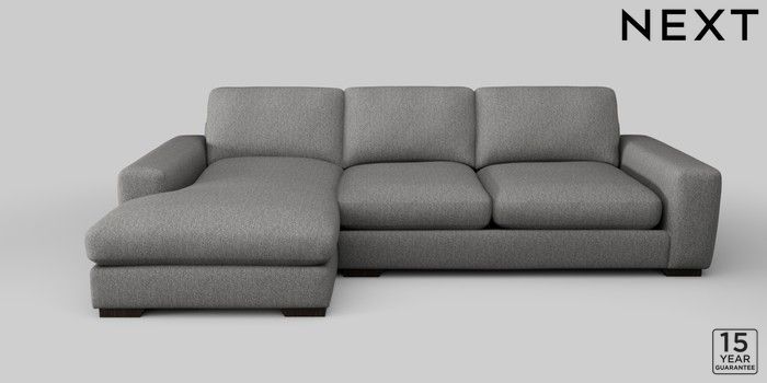 6.12.1 Buy Houghton Deep Sit Large Sofa Chaise - Left Hand Tweedy Chenille Dark Grey Large Square Angle - Dark from the Next UK online shop Click here to use our accessible website