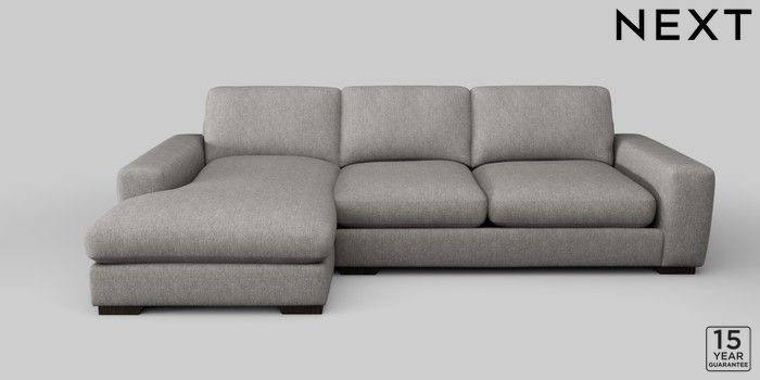 6.12.1 Buy Houghton Deep Sit Large Sofa Chaise - Left Hand Tweedy Chenille Mid Grey Large Square Angle - Dark from the Next UK online shop Click here to use our accessible website