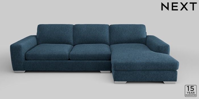 6.12.1 Buy Houghton Deep Sit Large Sofa Chaise - Right Hand Cotswold Chenille Dark Blue Large Square Angle - Chrome Metal from the Next UK online shop Click here to use our accessible website