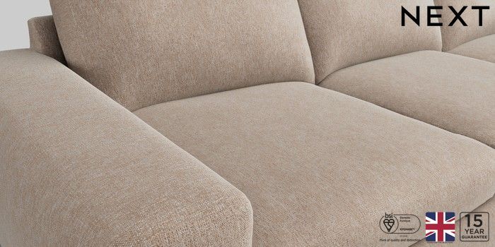 6.12.1 Buy Houghton Deep Sit Large Sofa Chaise - Right Hand Cotswold Chenille Light Natural Large Square Angle - Chrome Metal from the Next UK online shop Click here to use our accessible website