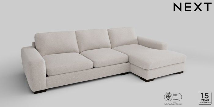 6.12.1 Buy Houghton Deep Sit Large Sofa Chaise - Right Hand Cotswold Chenille Oyster Large Square Angle - Dark from the Next UK online shop Click here to use our accessible website