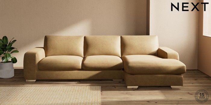 7.0.3 Buy Houghton Deep Sit Large Sofa Chaise - Right Hand Luxe Chenille Honey Yellow Large Square Angle - Chrome Metal from the Next UK online shop Click here to use our accessible website
