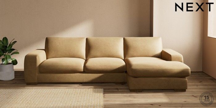 7.0.3 Buy Houghton Deep Sit Large Sofa Chaise - Right Hand Luxe Chenille Honey Yellow Large Square Angle - Mid from the Next UK online shop Click here to use our accessible website