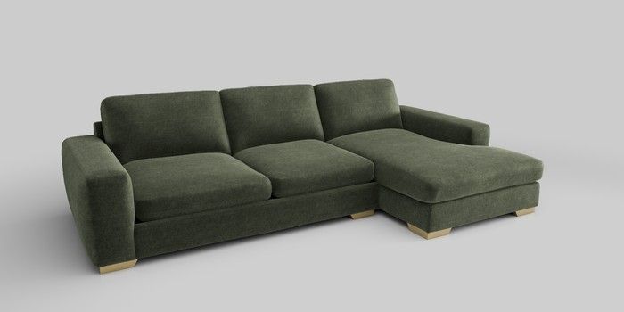 6.12.1 Buy Houghton Deep Sit Large Sofa Chaise - Right Hand Luxe Chenille Mid Green Large Square Angle - Brushed Brass from the Next UK online shop Click here to use our accessible website