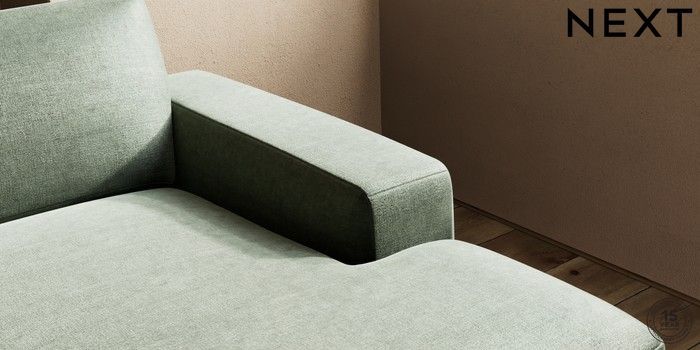 7.0.3 Buy Houghton Deep Sit Large Sofa Chaise - Right Hand Luxe Chenille Mid Green Large Square Angle - Brushed Brass from the Next UK online shop Click here to use our accessible website