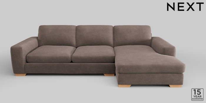 6.12.1 Buy Houghton Deep Sit Large Sofa Chaise - Right Hand Luxe Chenille Mink Brown Large Square Angle - Light from the Next UK online shop Click here to use our accessible website