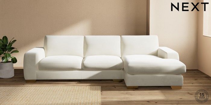 7.0.3 Buy Houghton Deep Sit Large Sofa Chaise - Right Hand Luxe Chenille Oyster Large Square Angle - Brushed Brass from the Next UK online shop Click here to use our accessible website