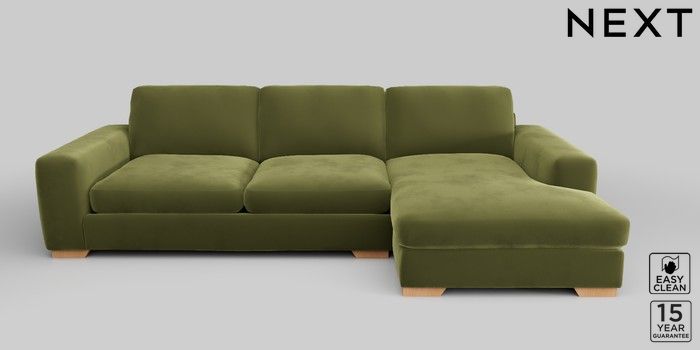 6.12.1 Buy Houghton Deep Sit Large Sofa Chaise - Right Hand Plush Velvet Easy Clean Mid Olive Green Large Square Angle - Light from the Next UK online shop Click here to use our accessible website