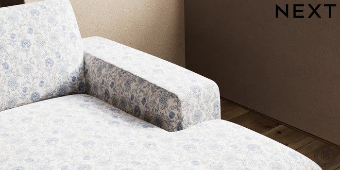 7.3.1 Buy Houghton Deep Sit Large Sofa Chaise - Right Hand Relaxed Linen Look Print Woodblock Floral Blue Large Square Angle - Mid from the Next UK online shop Click here to use our accessible website