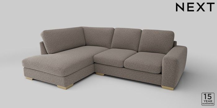 6.12.1 Buy Houghton Deep Sit Medium Corner Chaise - Left Hand Chunky Chenille Mink Brown Large Square Angle - Brushed Brass from the Next UK online shop Click here to use our accessible website