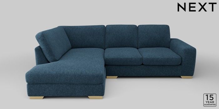 6.12.1 Buy Houghton Deep Sit Medium Corner Chaise - Left Hand Cotswold Chenille Dark Blue Large Square Angle - Brushed Brass from the Next UK online shop Click here to use our accessible website