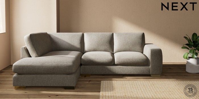 7.0.3 Buy Houghton Deep Sit Medium Corner Chaise - Left Hand Cotswold Chenille Mid Mink Brown Large Square Angle - Brushed Brass from the Next UK online shop Click here to use our accessible website