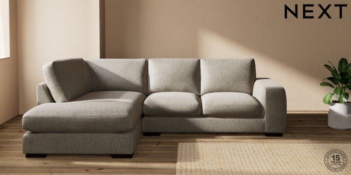 7.0.3 Buy Houghton Deep Sit Medium Corner Chaise - Left Hand Cotswold Chenille Mid Mink Brown Large Square Angle - Dark from the Next UK online shop Click here to use our accessible website