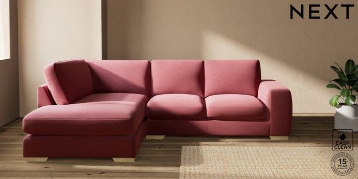 7.2.10 Buy Houghton Deep Sit Medium Corner Chaise - Left Hand Fine Chenille Easy Clean Mid Pink Large Square Angle - Light from the Next UK online shop Click here to use our accessible website