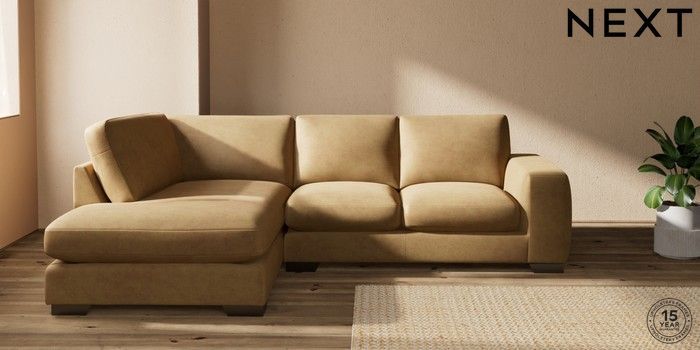 7.0.3 Buy Houghton Deep Sit Medium Corner Chaise - Left Hand Luxe Chenille Honey Yellow Large Square Angle - Gunmetal from the Next UK online shop Click here to use our accessible website