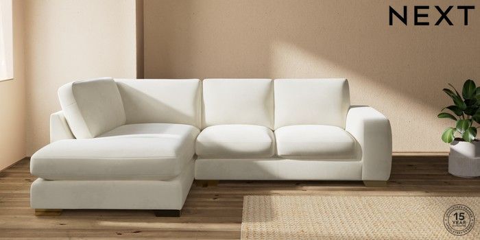 7.0.3 Buy Houghton Deep Sit Medium Corner Chaise - Left Hand Luxe Chenille Oyster Large Square Angle - Brushed Brass from the Next UK online shop Click here to use our accessible website