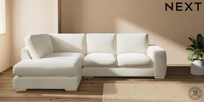 7.0.3 Buy Houghton Deep Sit Medium Corner Chaise - Left Hand Luxe Chenille Oyster Large Square Angle - Chrome Metal from the Next UK online shop Click here to use our accessible website