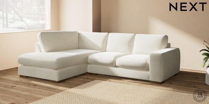 7.0.3 Buy Houghton Deep Sit Medium Corner Chaise - Left Hand Luxe Chenille Oyster Large Square Angle - Mid from the Next UK online shop Click here to use our accessible website