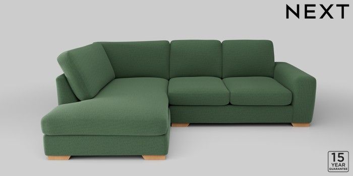 6.12.13 Buy Houghton Deep Sit Medium Corner Chaise - Left Hand Relaxed Linen Look Dark Green Large Square Angle - Light from the Next UK online shop Click here to use our accessible website