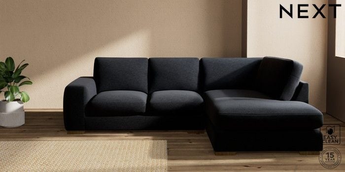 7.2.10 Buy Houghton Deep Sit Medium Corner Chaise - Right Hand Fine Chenille Easy Clean Black Large Square Angle - Mid from the Next UK online shop Click here to use our accessible website
