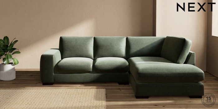 7.0.3 Buy Houghton Deep Sit Medium Corner Chaise - Right Hand Luxe Chenille Mid Green Large Square Angle - Dark from the Next UK online shop Click here to use our accessible website