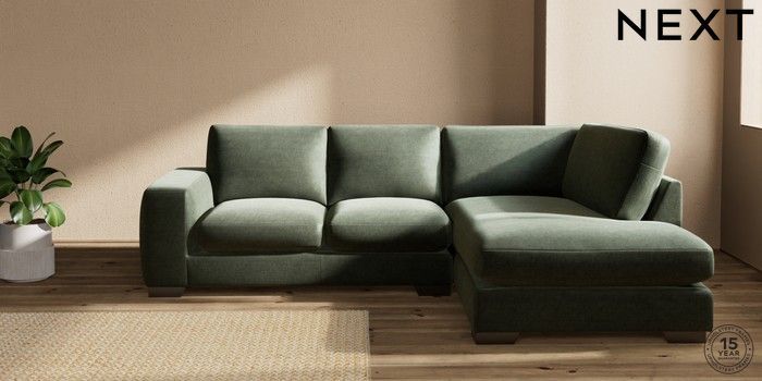 7.0.3 Buy Houghton Deep Sit Medium Corner Chaise - Right Hand Luxe Chenille Mid Green Large Square Angle - Gunmetal from the Next UK online shop Click here to use our accessible website