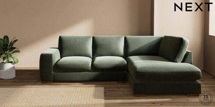 7.0.3 Buy Houghton Deep Sit Medium Corner Chaise - Right Hand Luxe Chenille Mid Green Large Square Angle - Mid from the Next UK online shop Click here to use our accessible website