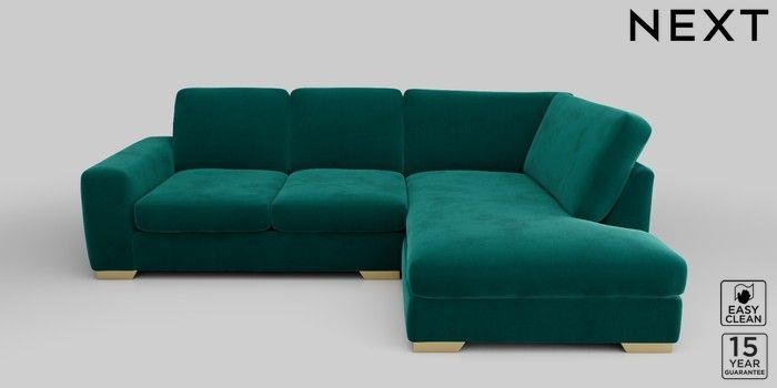 6.12.1 Buy Houghton Deep Sit Medium Corner Chaise - Right Hand Plush Velvet Easy Clean Juniper Green Large Square Angle - Brushed Brass from the Next UK online shop Click here to use our accessible website