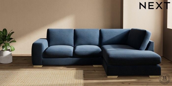 7.0.3 Buy Houghton Deep Sit Medium Corner Chaise - Right Hand Ripple Chenille Dark Blue Large Square Angle - Light from the Next UK online shop Click here to use our accessible website