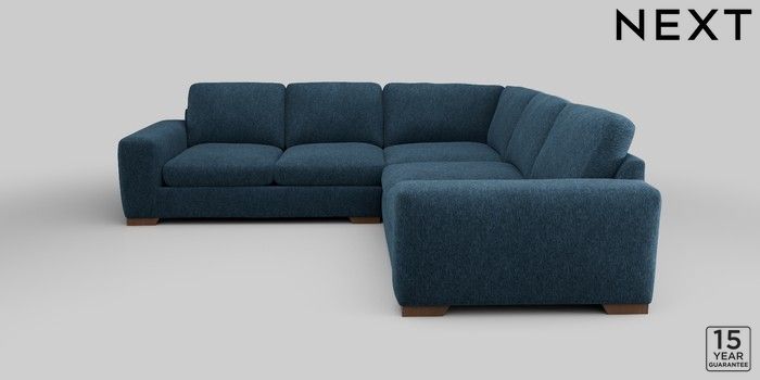 6.12.1 Buy Houghton Deep Sit Medium Corner Sofa - Universal Cotswold Chenille Dark Blue Large Square Angle - Mid from the Next UK online shop Click here to use our accessible website
