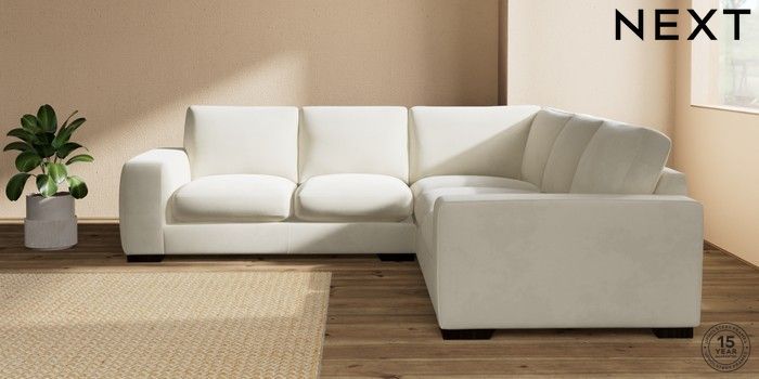 7.0.3 Buy Houghton Deep Sit Medium Corner Sofa - Universal Luxe Chenille Oyster Large Square Angle - Dark from the Next UK online shop Click here to use our accessible website
