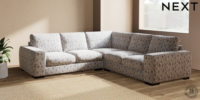 7.3.1 Buy Houghton Deep Sit Medium Corner Sofa - Universal Relaxed Linen Look Print Woodblock Floral Blue Large Square Angle - Dark from the Next UK online shop Click here to use our accessible website