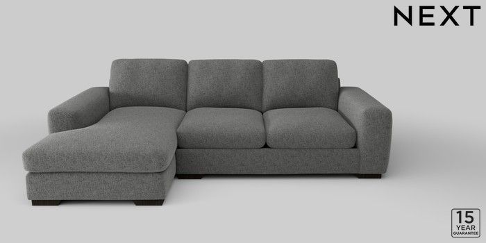 6.12.1 Buy Houghton Deep Sit Medium Sofa Chaise - Left Hand Chunky Chenille Dark Grey Large Square Angle - Dark from the Next UK online shop Click here to use our accessible website