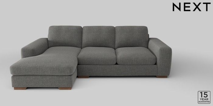 6.12.1 Buy Houghton Deep Sit Medium Sofa Chaise - Left Hand Chunky Texture Dark Grey Large Square Angle - Mid from the Next UK online shop Click here to use our accessible website