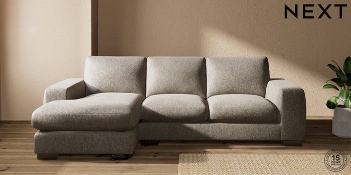 7.0.3 Buy Houghton Deep Sit Medium Sofa Chaise - Left Hand Cotswold Chenille Mid Mink Brown Large Square Angle - Gunmetal from the Next UK online shop Click here to use our accessible website