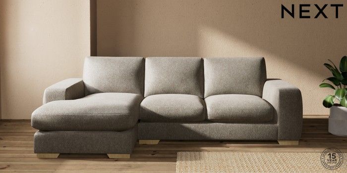 7.0.3 Buy Houghton Deep Sit Medium Sofa Chaise - Left Hand Cotswold Chenille Mid Mink Brown Large Square Angle - Light from the Next UK online shop Click here to use our accessible website