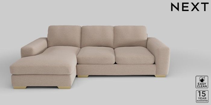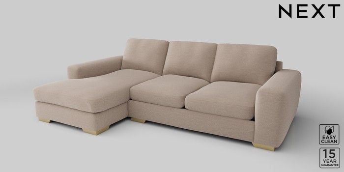 6.12.1 Buy Houghton Deep Sit Medium Sofa Chaise - Left Hand Fine Chenille Easy Clean Mid Taupe Brown Large Square Angle - Brushed Brass from the Next UK online shop Click here to use our accessible website