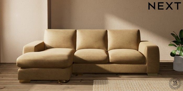 7.0.3 Buy Houghton Deep Sit Medium Sofa Chaise - Left Hand Luxe Chenille Honey Yellow Large Square Angle - Brushed Brass from the Next UK online shop Click here to use our accessible website