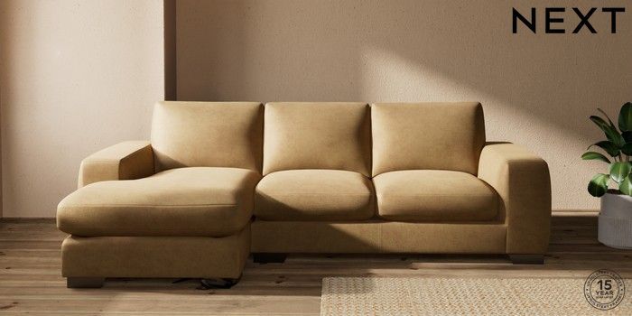 7.0.3 Buy Houghton Deep Sit Medium Sofa Chaise - Left Hand Luxe Chenille Honey Yellow Large Square Angle - Gunmetal from the Next UK online shop Click here to use our accessible website