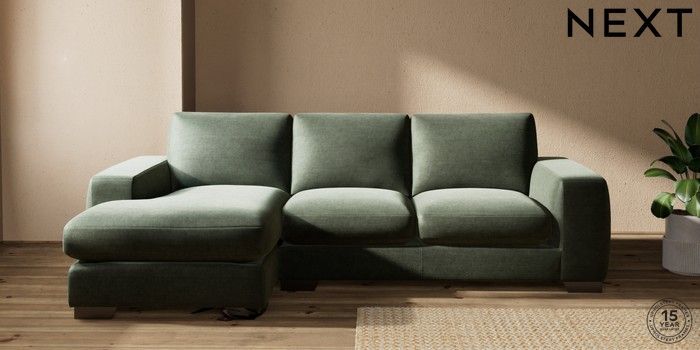 7.0.3 Buy Houghton Deep Sit Medium Sofa Chaise - Left Hand Luxe Chenille Mid Green Large Square Angle - Gunmetal from the Next UK online shop Click here to use our accessible website