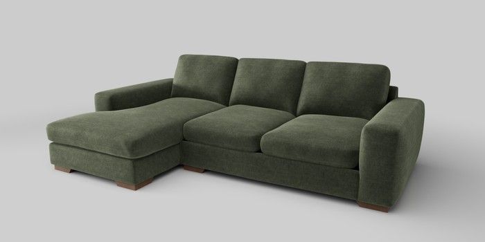 6.12.1 Buy Houghton Deep Sit Medium Sofa Chaise - Left Hand Luxe Chenille Mid Green Large Square Angle - Mid from the Next UK online shop Click here to use our accessible website
