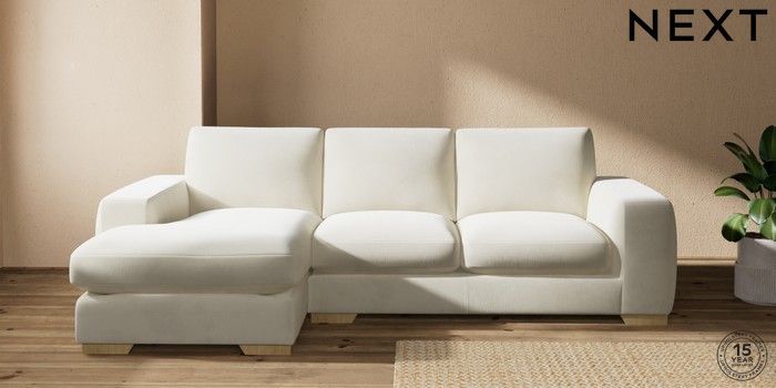 7.0.3 Buy Houghton Deep Sit Medium Sofa Chaise - Left Hand Luxe Chenille Oyster Large Square Angle - Light from the Next UK online shop Click here to use our accessible website