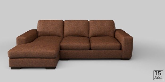 6.12.1 Buy Houghton Deep Sit Medium Sofa Chaise - Left Hand Monza Faux Leather Easy Clean Chestnut Brown Large Square Angle - Dark from the Next UK online shop Click here to use our accessible website