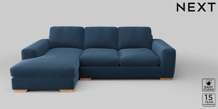 6.12.1 Buy Houghton Deep Sit Medium Sofa Chaise - Left Hand Plush Velvet Easy Clean Airforce Blue Large Square Angle - Light from the Next UK online shop Click here to use our accessible website