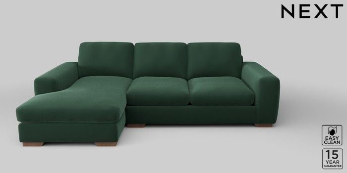 6.12.1 Buy Houghton Deep Sit Medium Sofa Chaise - Left Hand Plush Velvet Easy Clean Bottle Green Large Square Angle - Mid from the Next UK online shop Click here to use our accessible website