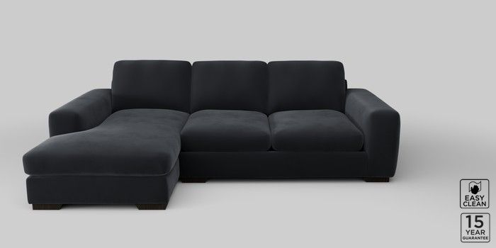 6.12.1 Buy Houghton Deep Sit Medium Sofa Chaise - Left Hand Plush Velvet Easy Clean Charcoal Grey Large Square Angle - Dark from the Next UK online shop Click here to use our accessible website