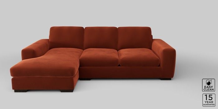 6.12.1 Buy Houghton Deep Sit Medium Sofa Chaise - Left Hand Plush Velvet Easy Clean Ginger Orange Large Square Angle - Dark from the Next UK online shop Click here to use our accessible website