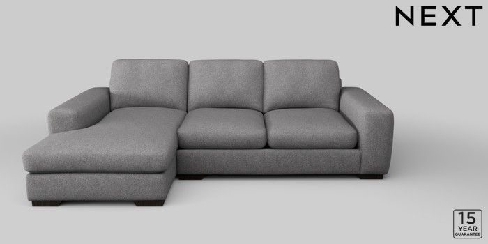 6.12.1 Buy Houghton Deep Sit Medium Sofa Chaise - Left Hand Studio Chenille Mid Grey Large Square Angle - Dark from the Next UK online shop Click here to use our accessible website