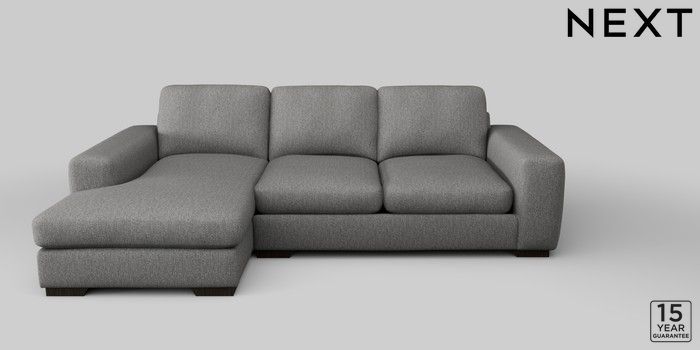 6.12.1 Buy Houghton Deep Sit Medium Sofa Chaise - Left Hand Tweedy Chenille Dark Grey Large Square Angle - Dark from the Next UK online shop Click here to use our accessible website